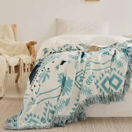 1pc ボヘミアンニットスローブランケット、ミックスカラー、32本棒、ジャカード織、洗濯機洗い、オールシーズン、多目的、オフィス、ベッド、家庭用