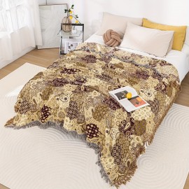 1pc ボヘミアンニットスローブランケット、ミックスカラー、32本棒、ジャカード織、洗濯機洗い、オールシーズン、多目的、オフィス、ベッド、家庭用