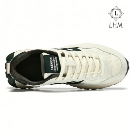 メンズファッショナブルなタンスニーカー - レースアップデタイルと快適なゴムソールを備えたカジュアルスニーカー、四季対応、毎日着用可能