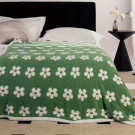 快適なフローラルニットスロー毛布 - ソファ、ベッド、オフィス、キャンプ用の柔らかくて暖かい軽量 - 万能オールシーズン使用、洗濯機可、ポリエステル、500gsm