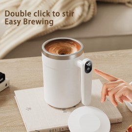 PANCERKA 充電式自己撹拌コーヒーマグ 温度表示付き - USB充電、ミルク、チョコレート、モカ用密閉トラベルタンブラー