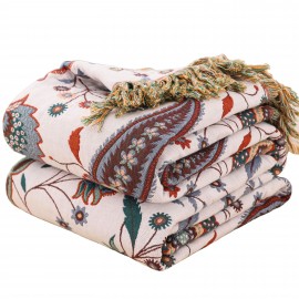 ボヘミアンコットンタッセルスロー毛布 - リバーシブル軽量ベッドカバー、夏用、マルチカラーのペイズリー&フローラルパターン、オールシーズンのソファまたはベッドデコレーション、洗濯機可、ベッド用ブランケット