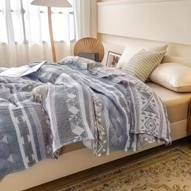 リバーシブル100%コットン軽量ジャカードスロー・ブランケット - オールシーズン洗濯機可ソファベッドカバー、幾何学模様の現代的なホームデコレーション、リビングルーム&ベッドルーム用ソファスローカバー | 快適なホームスタイル | 洗濯機で洗えるテキスティル