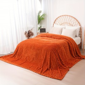 現代フランネルスローブランケット、スーパーラージなチェック柄、オレンジ、100%ポリエステル、300-350g/㎡、ニット生地、印刷なし、家族、多目的、春のイベント用