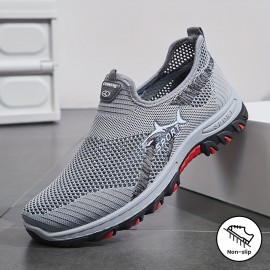 メンズ アスレチック スリッポン サンダル - 通気性メッシュアッパー、滑り止めラバーソール、屋外&カジュアルウェア用クイックドライ、軽量&快適、グレーにブラックアクセント、夏の靴 | ミニマリストデザイン | ラバーソールシューズ
