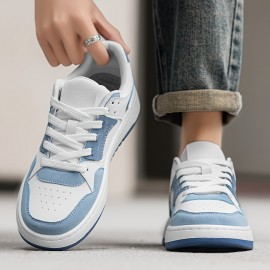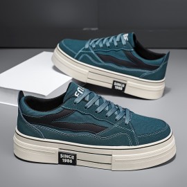 メンズカジュアルスポーツスニーカー - トレンディなブルーとホワイトのキャンバススケートシューズ、通気性のある生地の裏地、オールシーズン用ロートップレースアップシューズ