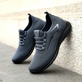 メンズカジュアルアスレチックスニーカー - 通気性ニットアッパー、滑り止めラバーソール、レースアップ!クロージャー、ブラックにホワイトアクセント、軽量&快適なカジュアルアットワール、カジュアルフットウェア | モダンスニーカー | 安全なレースアップシューズ