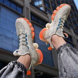 Men'Sトレンディブレードスニーカー - コンフォートなニットアスレチックシューズ、ゴムソール、通気性のあるメッシュ&EVAインソール、カジュアルストリートウェア用のレースアップ、オールシーズンフットウェア | スタイリッシュなコンフォート | コンフォートフィット