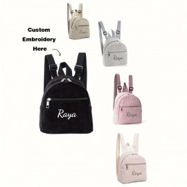 カスタマイズ可能なコーデュロイバックパック - 個人化された名前デザイン、ファッショナブルなユニセックス旅行&学校バッグ、複数のコンパートメントとフロントポケット、ソリッドカラー、ジップクローズ、ポリエステル裏地 - 男の子や女の子に最適なギフト、旅行用バックパック