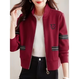レディースカジュアルファッションベースボールジャケット、ポケット付き多機能アウター、春/秋用