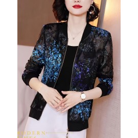 女性用エレガントフラワージャケット、通気性抜群、軽量、ブラック&ブルー